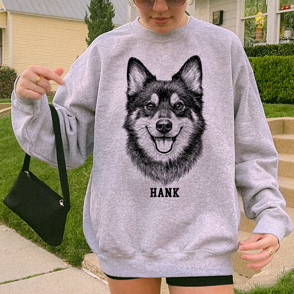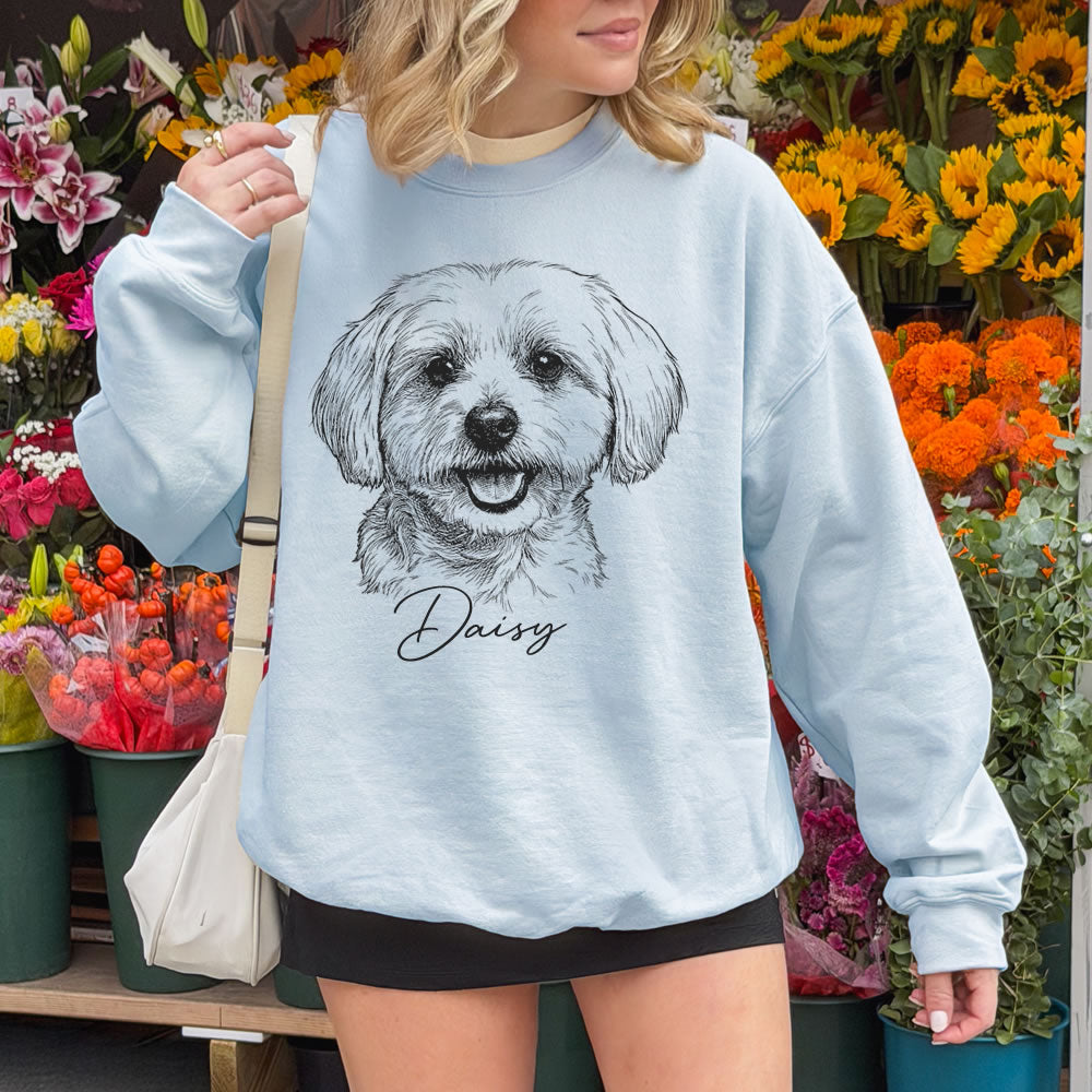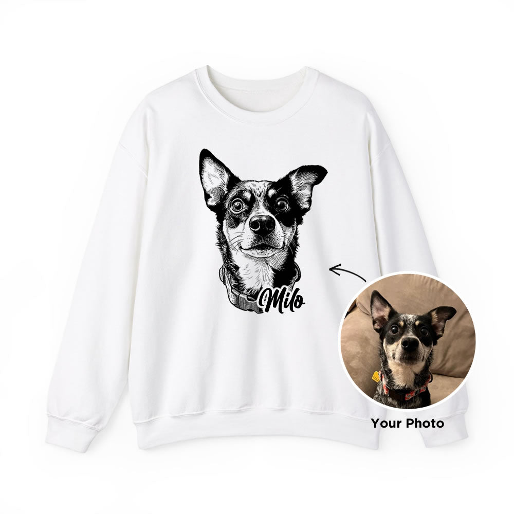 Our Custom Pet Portrait Sweatshirt is designed to capture the love and warmth you share with your furry best friend.